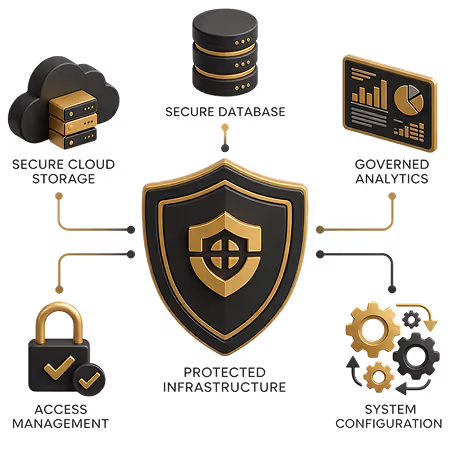 Our infrastructure is designed using cloud-native principles, secure access management, and scalable architecture to ensure reliability and operational resilience.